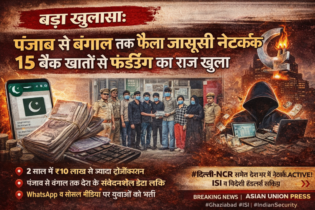 गाजियाबाद के कौशांबी क्षेत्र से सामने आए जासूसी नेटवर्क मामले ने देश की सुरक्षा एजेंसियों को अलर्ट कर दिया है। जांच में खुलासा हुआ है कि यह नेटवर्क केवल एक शहर तक सीमित नहीं था, बल्कि इसकी जड़ें पंजाब से लेकर पश्चिम बंगाल तक फैली हुई थीं