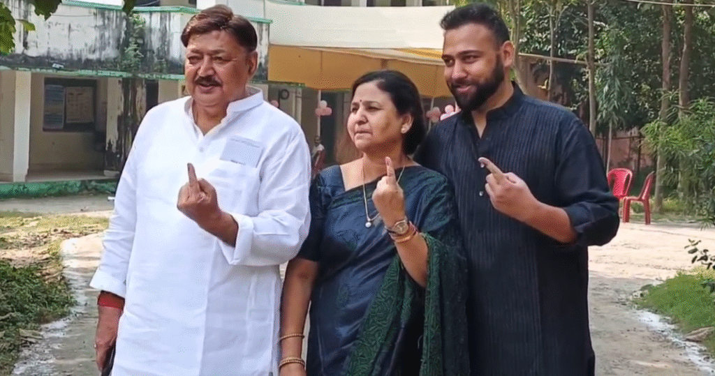 पत्नी विभा शर्मा और पुत्र वैभव शर्मा के साथ कृषि भवन केंद्र पहुंचे विधायक, कहा– भयमुक्त होकर करें मतदान
