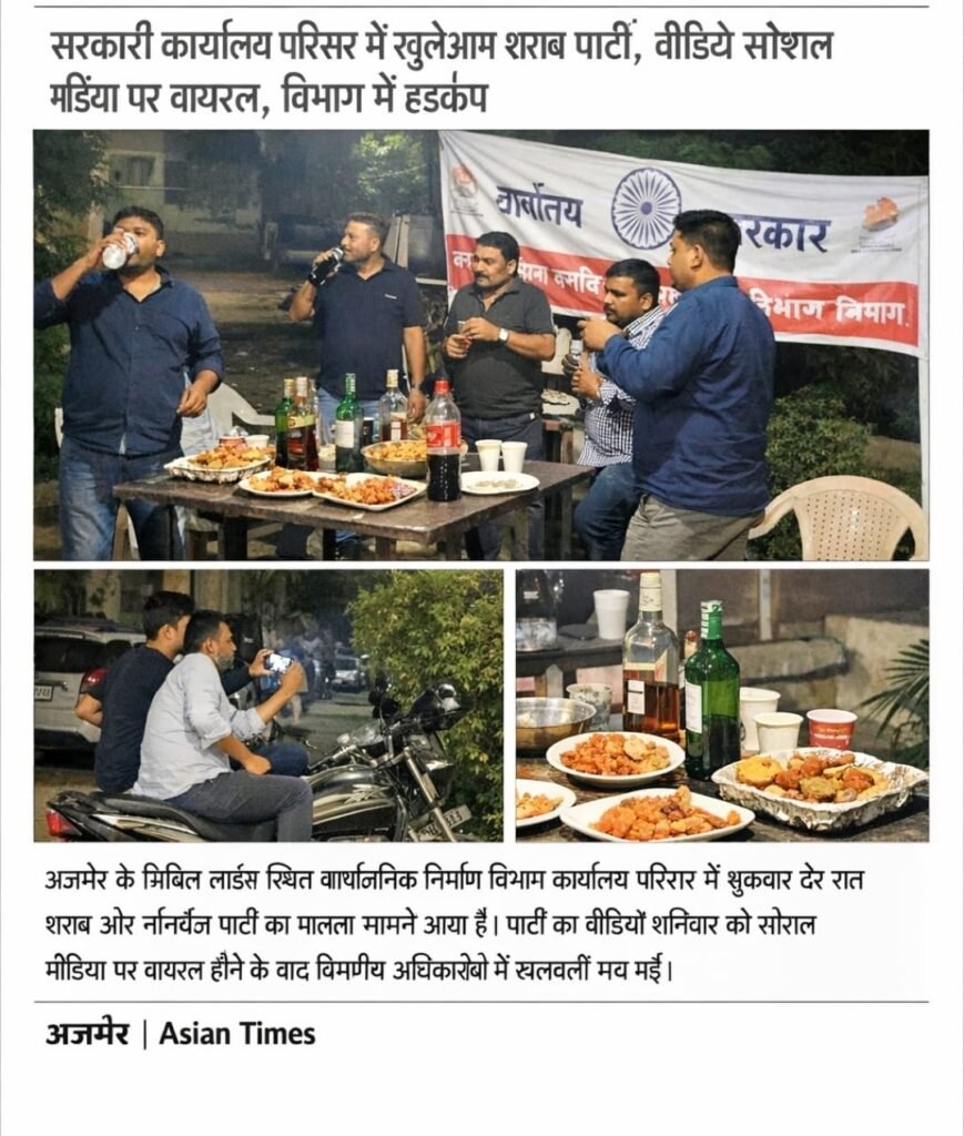 अजमेर: PWD का सरकारी कैंपस बना शराब–नॉनवेज पार्टी का अड्डा, वीडियो वायरल