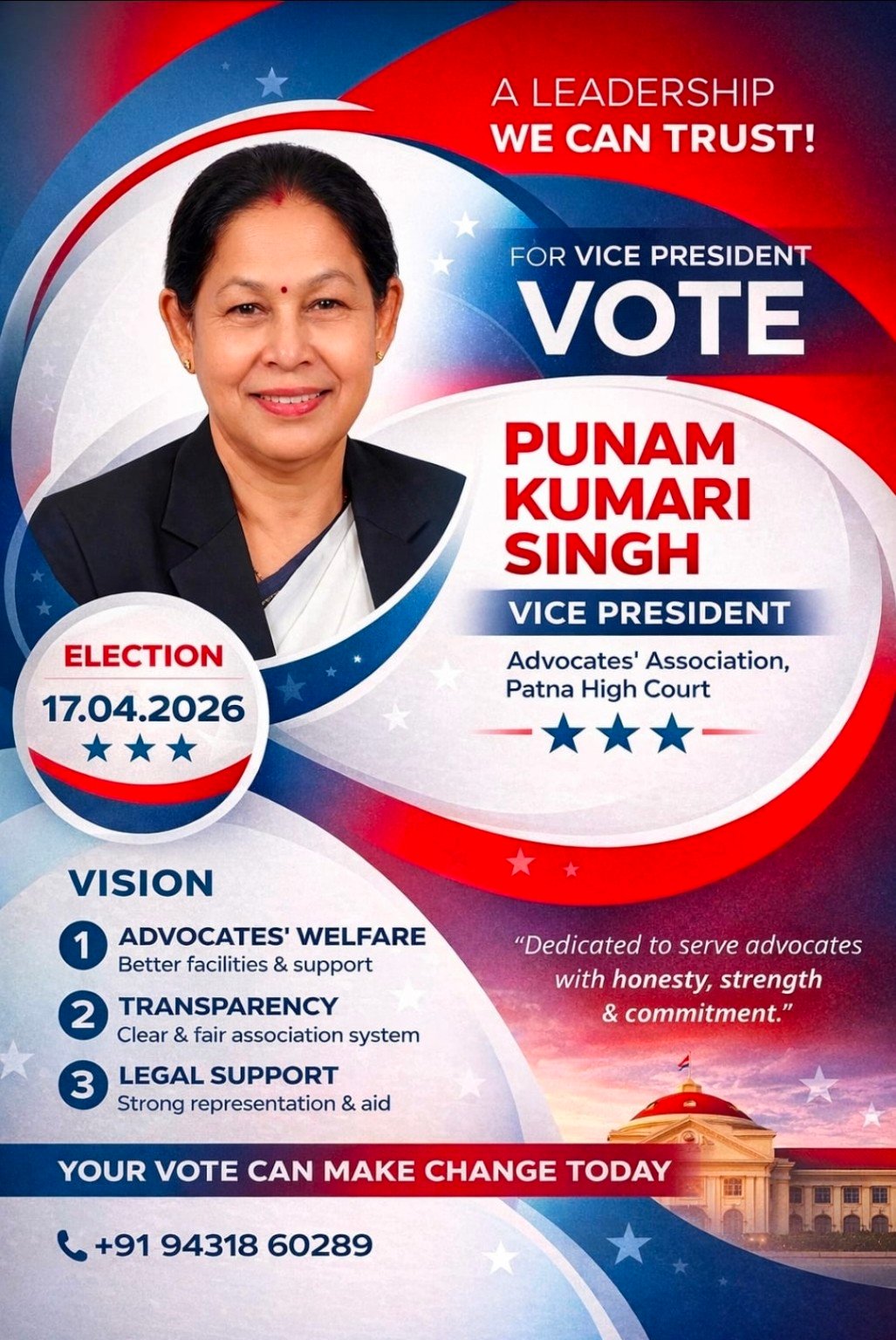 पटना हाईकोर्ट एडवोकेट्स एसोसिएशन के 17 अप्रैल 2026 को होने वाले चुनाव ने अब पूरी तरह से रफ्तार पकड़ ली है। खासकर उपाध्यक्ष पद को लेकर अधिवक्ताओं के बीच जबरदस्त हलचल है।