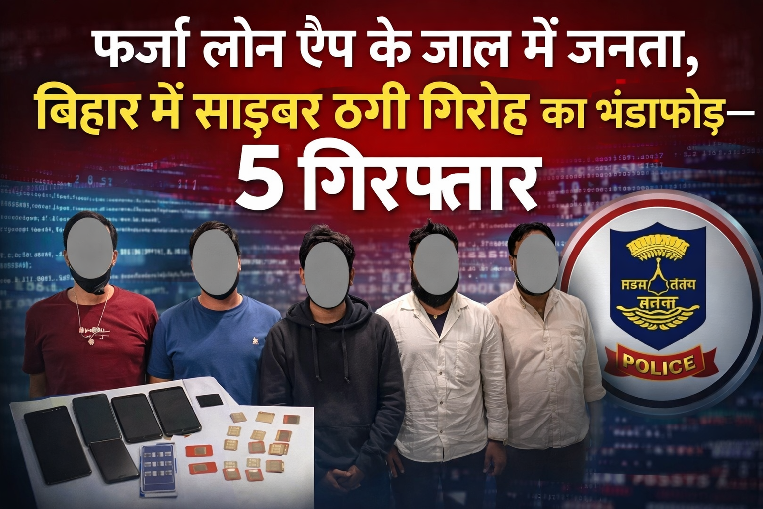 फर्जी लोन ऐप के जाल में जनता, बिहार में साइबर ठगी गिरोह का भंडाफोड़—5 गिरफ्तार
